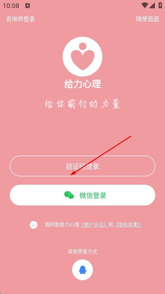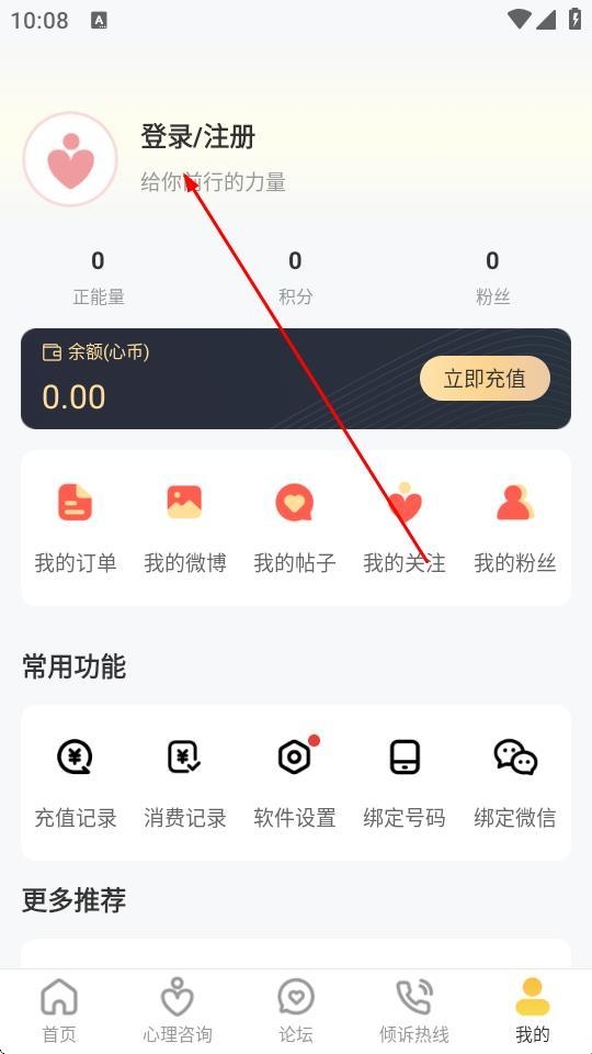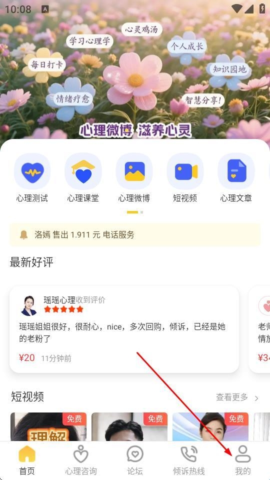 1、打开给力心理APP,进入首页,点击底部导航栏中我的选项。