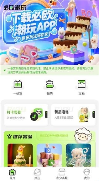 1、提供潮流盲盒购买,用户可以体验拆盲盒的刺激,抽取心仪奖品。