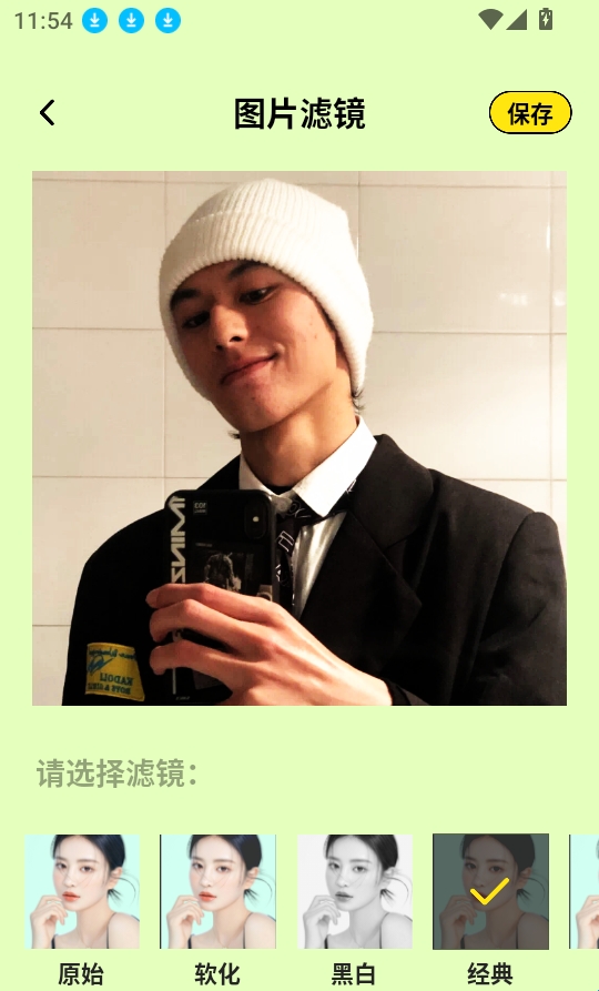 5、如此就可以选择自己喜欢的滤镜,点击右上角的“保存”按钮来一键添加滤镜进行保存。