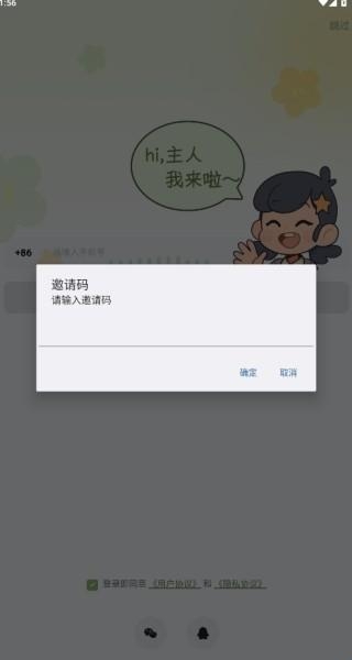 3、同意协议之后,会弹出邀请码输入框,有邀请码可以填,没有点取消。