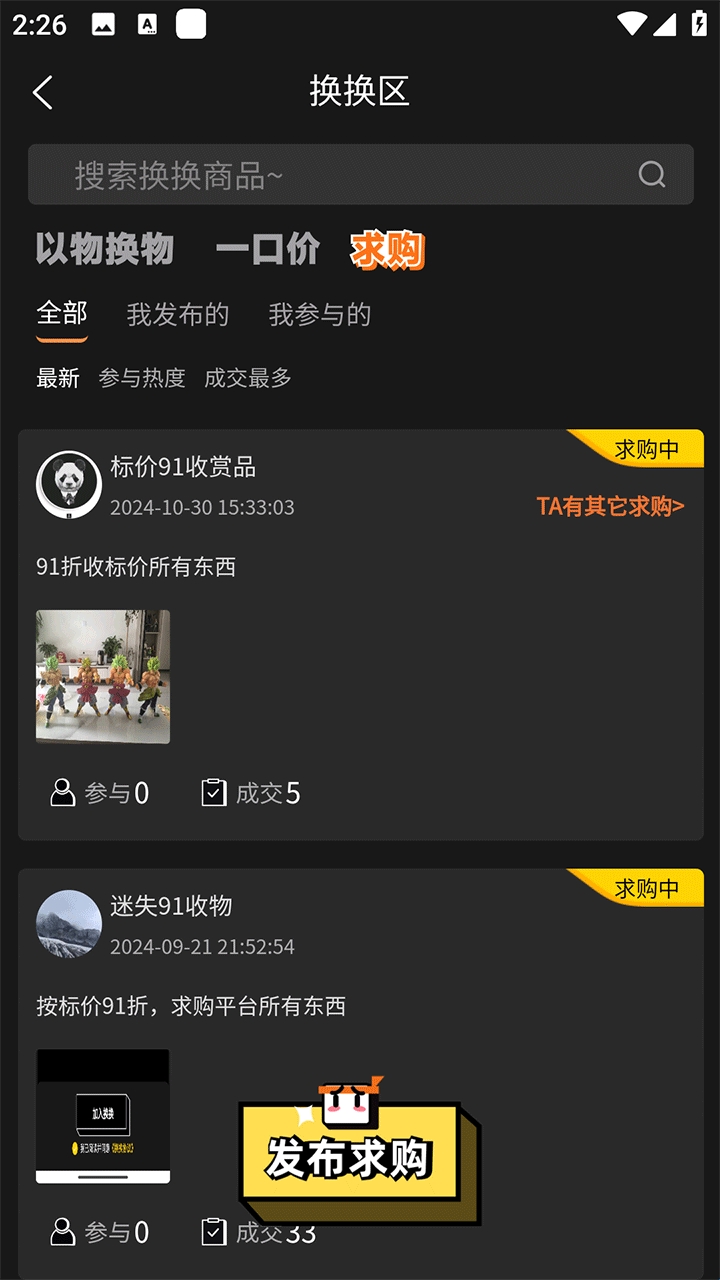 4、对特别想要的奖品,可在平台发布【求购】信息等待匹配。