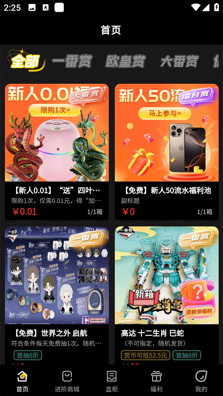 你喜欢各种各样的次元潮品吗?你想感受开盲盒的乐趣吗?下载乐玩一番赏app吧!软件上有多种商品购买模式,你可以选择直接买制定样式的产品,还可以选择来到我们一番赏产品的卡池进行抽奖,说不定就中了特等奖呢!下单后抽到的或者购买的产品为您邮递到家,让你在家中体验开遍盲盒的乐趣!