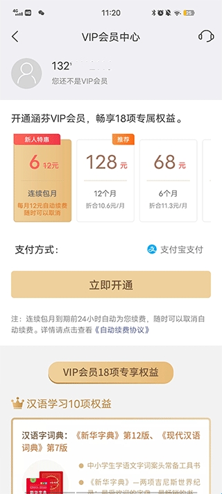 2、接着你就能看到收费情况,开通相应的会员服务,即可畅读软件中的课程。