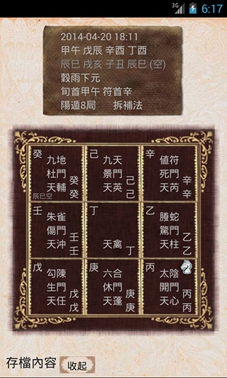 2、盘局解读:对生成的奇门盘局进行基础解读,解释各宫位的吉凶、五行生克关系、神煞寓意等,为用户理解盘局提供参考。
