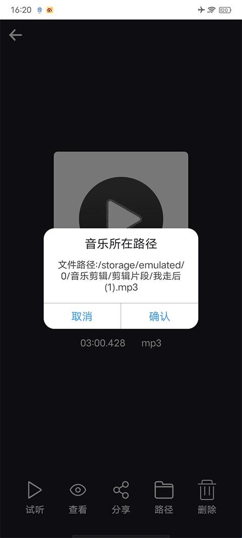 4、会弹出该音乐所在的路径,根据这个路径可找到刚刚导出的音频。