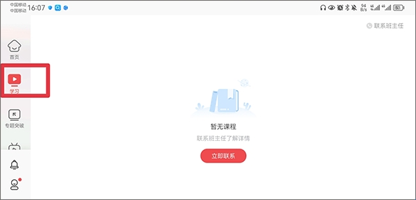 2、完成后班主任会为你安排课程,课程安排后会在学习页面显示,然后选择课程进行学习即可。