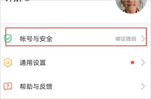 2、在出现的界面中点击账号与安全按钮的小箭头;