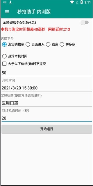 3、能加入购物车的商品建议使用“淘宝购物车”模式,这个模式速度最快,可以判断结算价格,防止活动进入太快,时间没到价格没刷新或没抢到折扣名额等,检查到价格高时会自动返回重新提交,如果是一些聚划算活动商品无法提前加入购物车,就需要设置成“页面进入”这模式。