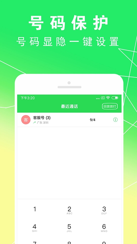 2、一键注册,安装即用,功能全面,去电显号或者隐号,一机解决