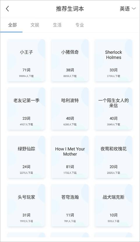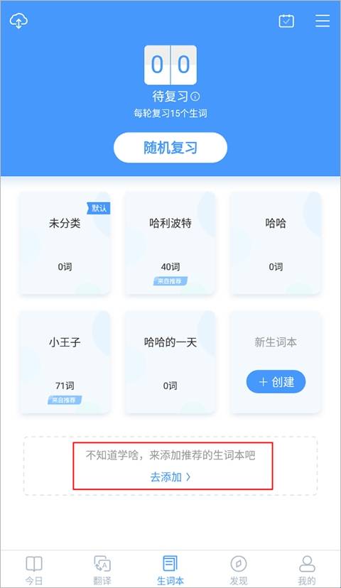 2、在推荐生词本页面选择添加的生词本。