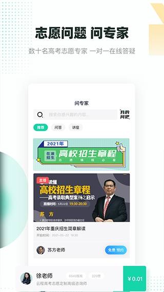 5、专家咨询,不懂的高考问题,咨询权威志愿专家,即时得到专业解答。