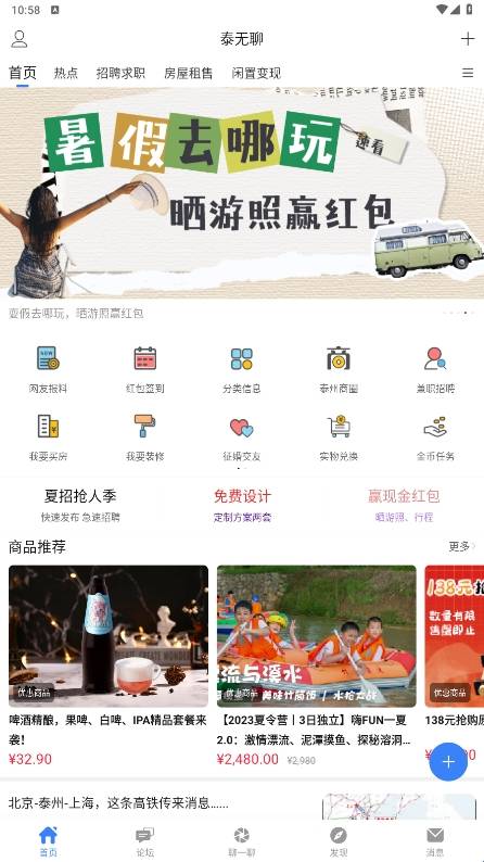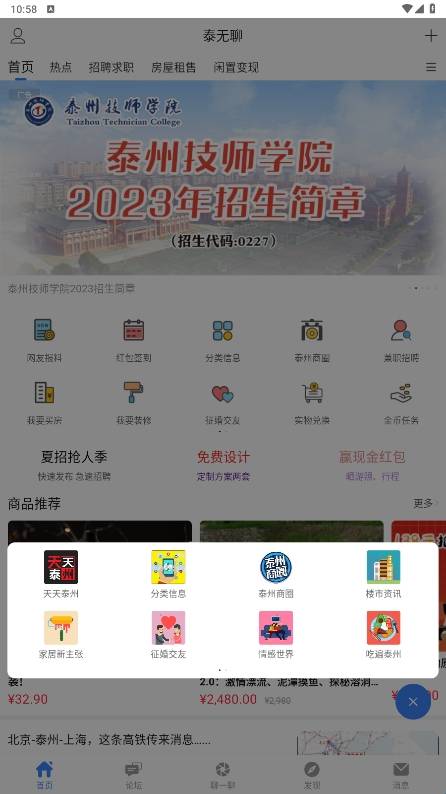 泰无聊是一款专门为泰州人打造的关注本地生活的app,软件上不仅有各种生活服务,还有各种便民业务办理。比如社保医保的缴纳以及本地新闻的查询都可以在app上办理。软件上还会发布住房以及单位的招聘信息,初次到泰州的用户可以在泰无聊app上找到合适的房源以及合适的工作,还可以在本地生活圈进行交友,是一款非常实用的多功能app。