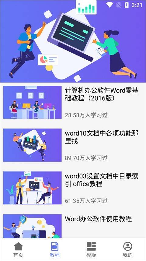 6、教程页面可以观看各种word操作教程,让你更加快速上手word文档编辑。