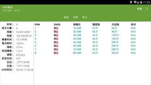 GPS测试,一款针对广大安卓手机用户设计的手机定位测试工具。软件功能强大,能够同时接收全球四大卫星导航系统的信号,还拥有丰富的工具,可以帮助用户轻松获取维度、经度、修复时间、首次耗时、海拔、定位精度等多种卫星实时信息。
