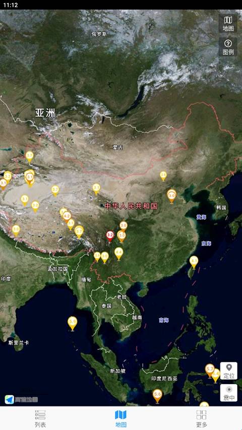 2、可以双指缩放地图进行查看。随时在地图中为你标记全球范围内发生过地震的区域。