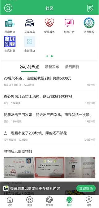 4、在社区界面中,查看各种信息和服务。