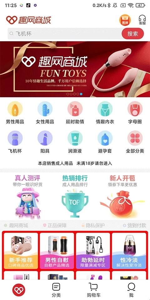 趣网商城(原名:趣网)是一款面向成年人用户群体打造的网上购物平台。软件拥有丰富的两性商品,涵盖1000余款精品及200个热门品牌,不管是男性用品还是女性用品都非常齐全,所有商品均采用严格保密包装,支持货到付款,满足你的多种消费需求。