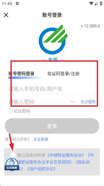 2、输入手机号和验证码,勾选用户协议和隐私政策。