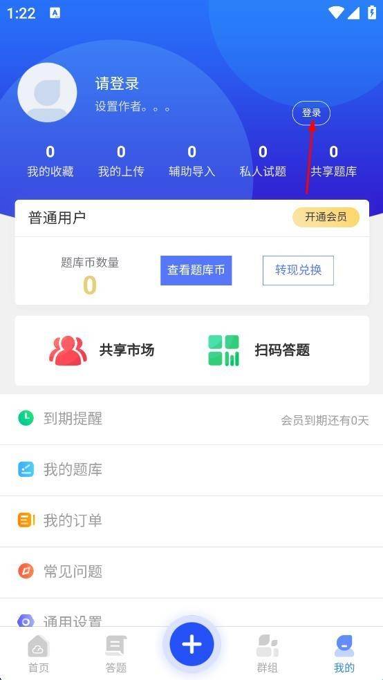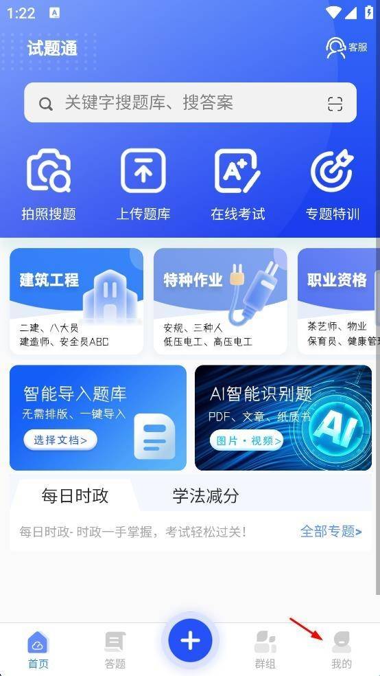 2、在试题通主界面,点击右下角我的,进入个人页面。