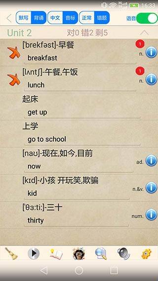 6、背,支持默写和背诵模式,按中文或音标根据首字母默写单词。