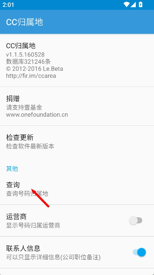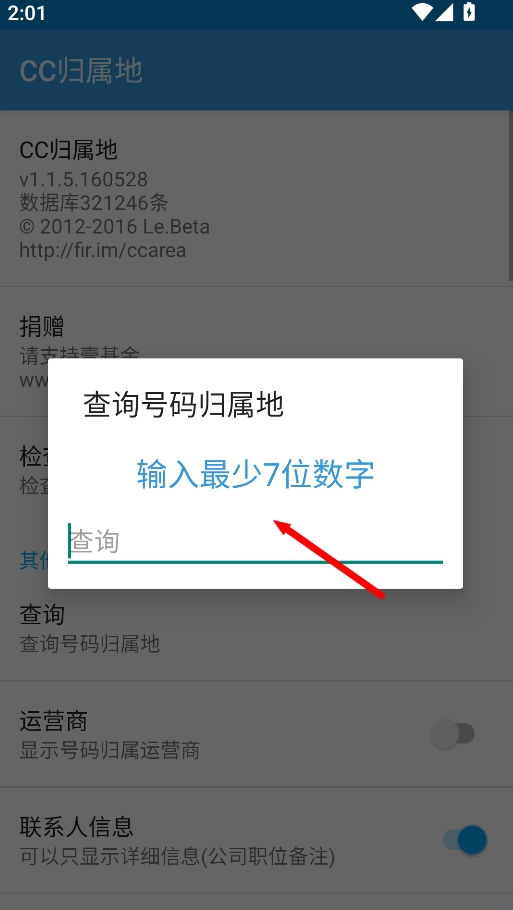 1、点击“查询”按钮后进入查询界面,开始号码归属地的搜索操作。
