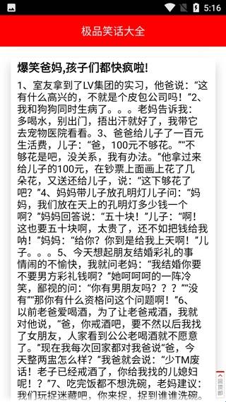 1、极品笑话大全传递精彩笑料,造福广大面瘫患者,专注打造爆笑内容,让你在碎片时间里也能尽情欢笑!