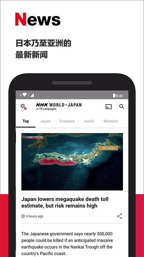 3、唯一支持简单新闻音频MP3下载的NHK新闻App。