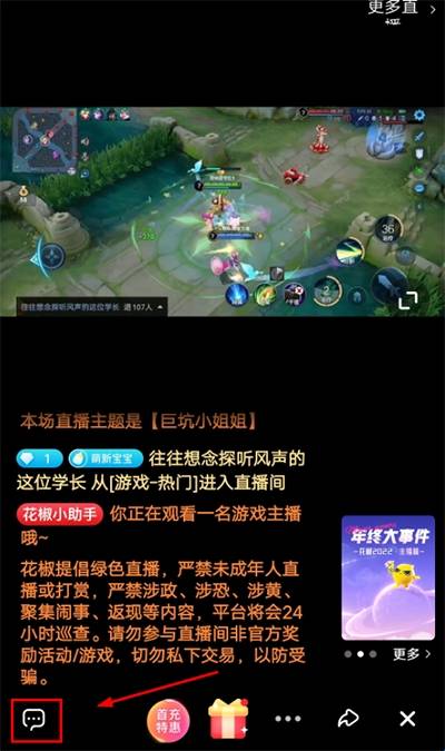 2、点击直播间左下角对话气泡按钮,将弹幕按钮开启后就能发送弹幕了。