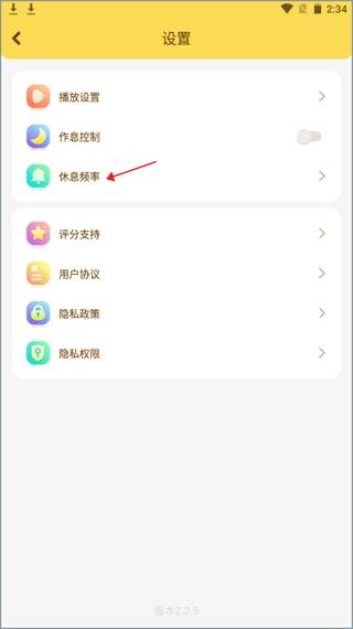 2、这里面可以设置一些参数,像播放、作息等,点击“休息频率”。