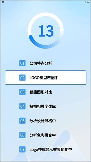 1、打开一键logo设计app,选择开始设计,进入一键logo设计环节。