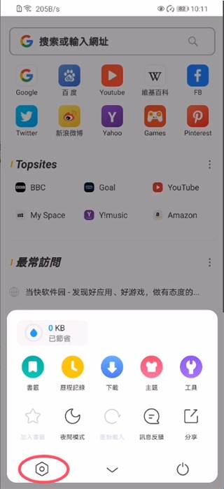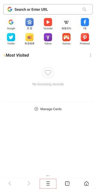 1、在本站下载安装好uc浏览器国际版后点击应用底部的菜单按钮;