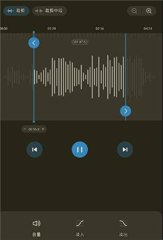 3、对自己的音频进行你想要的效果进行编辑,比如剪裁、淡入、淡出等等。