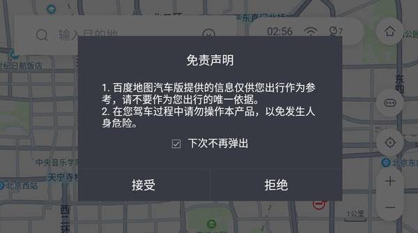 1、在本站下载安装百度地图汽车版,运行软件,点击接受;