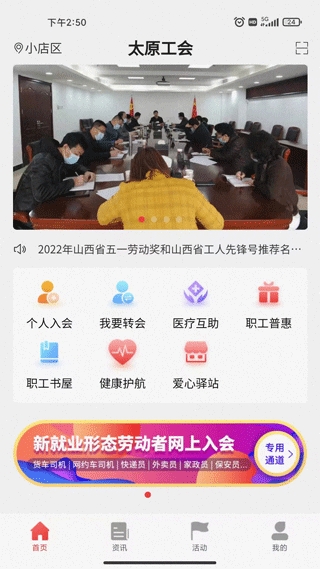 太原市总工会官方版区别于传统的宣传网站,覆盖移动设备多个入口。