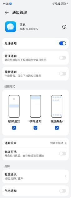 开启通知权限:进入“设置→应用→信息→通知管理”,确保“允许通知”“横幅通知”等选项开启。