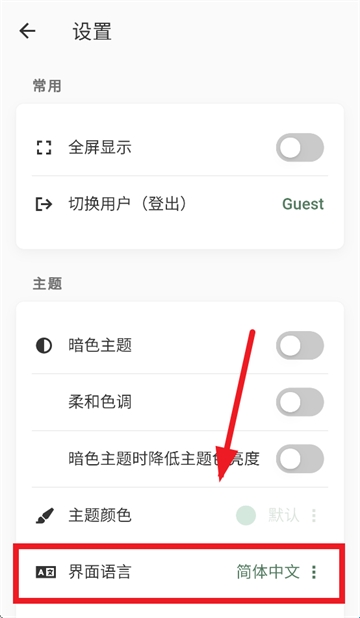 2、在设置界面选择界面语言。