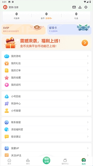 在这里可以对自己的账号进行管理以及管理自己的订单、礼包之类的。