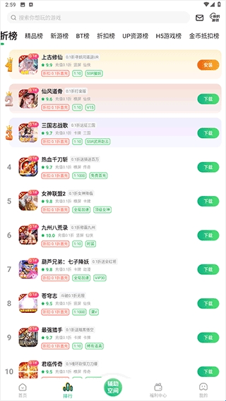 将所有游戏种类进行了排行,用户可以在上方的搜索栏或者在下方的类别里面查找自己想要畅玩的游戏。