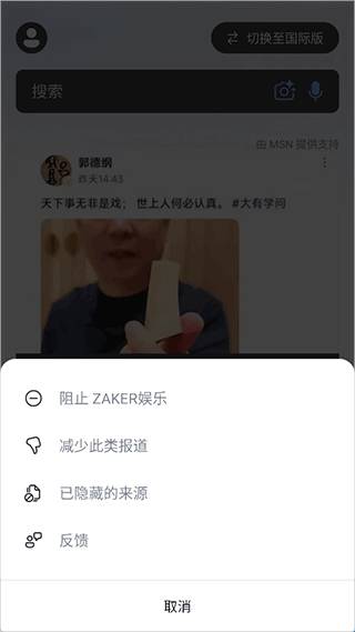 2、然后点击阻止或减少就可以减少推荐此类新闻的次数。