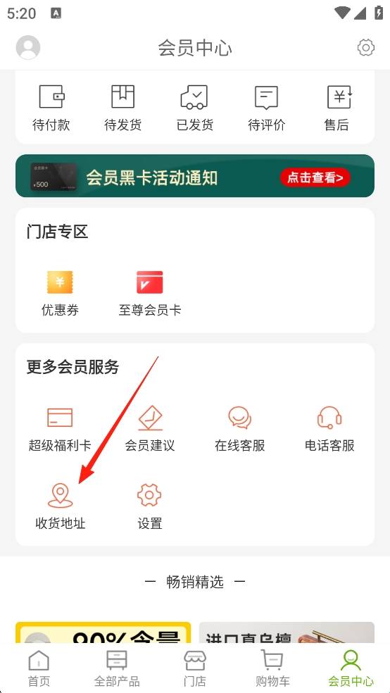 2、下滑找到并点击收货地址。