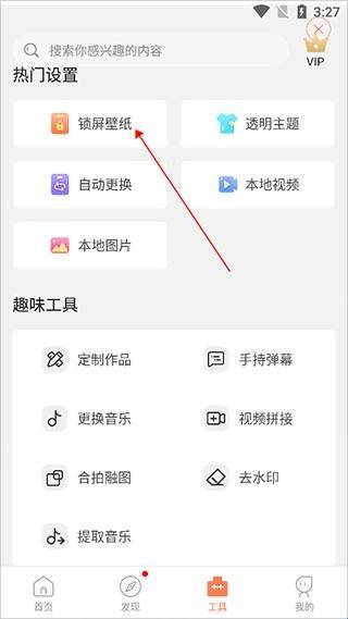 1、进入应用的工具页面,点击热门设置里的【锁屏壁纸】。