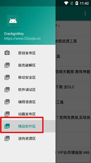 原创发布区、脱壳破解区、软件调区、移动安全区等。