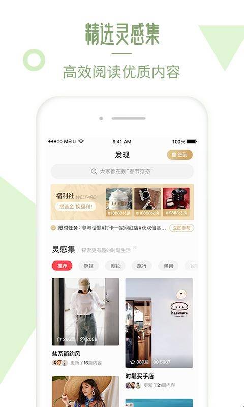 2、时尚社交,精致的内容社区,汇聚了全球的时髦生活。