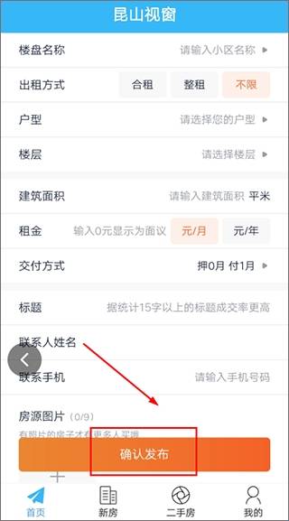3、选择完成后,填写出租房屋的具体信息,点击【确认发布】即可。