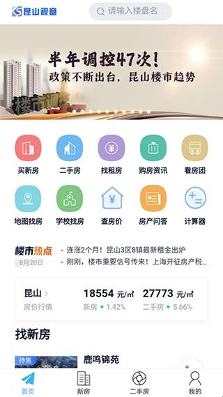 1、昆山视窗app是一款集二手房、新房、租房,买房卖房查房价找房的专业房产APP。