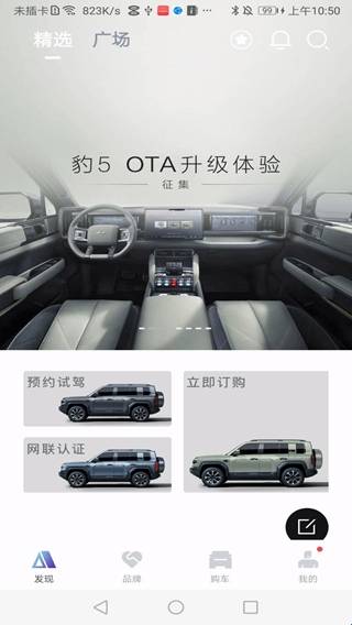 方程豹汽车app是一款由深圳方程豹汽车销售有限公司打造的全新新能源汽车品牌。软件界面简洁,功能丰富,为车主提供试驾、购车、定制车、车主交流等服务,还有丰富的相关资讯内容可以第一时间了解,让用户看车、买车更方便!