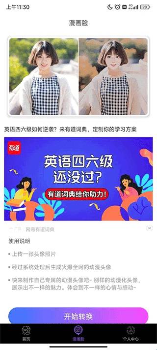 2、点击漫画脸,可以进行转换。
