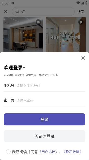 8、若要查看更多案例详情或使用部分服务,需登录APP,可选择手机号密码登录或验证码登录,登录前需勾选同意《用户协议》《隐私政策》。