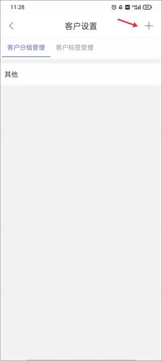 2、这里显示的是客户分组管理列表,点击右上角的“+”。