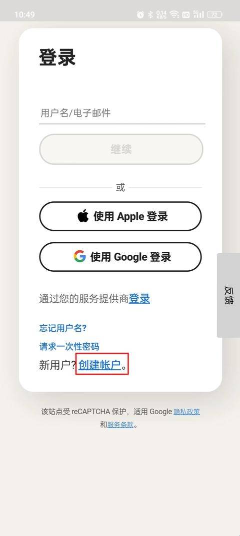 2、然后会进入到登录页面,在登录页面的下方找到【创建账户】;